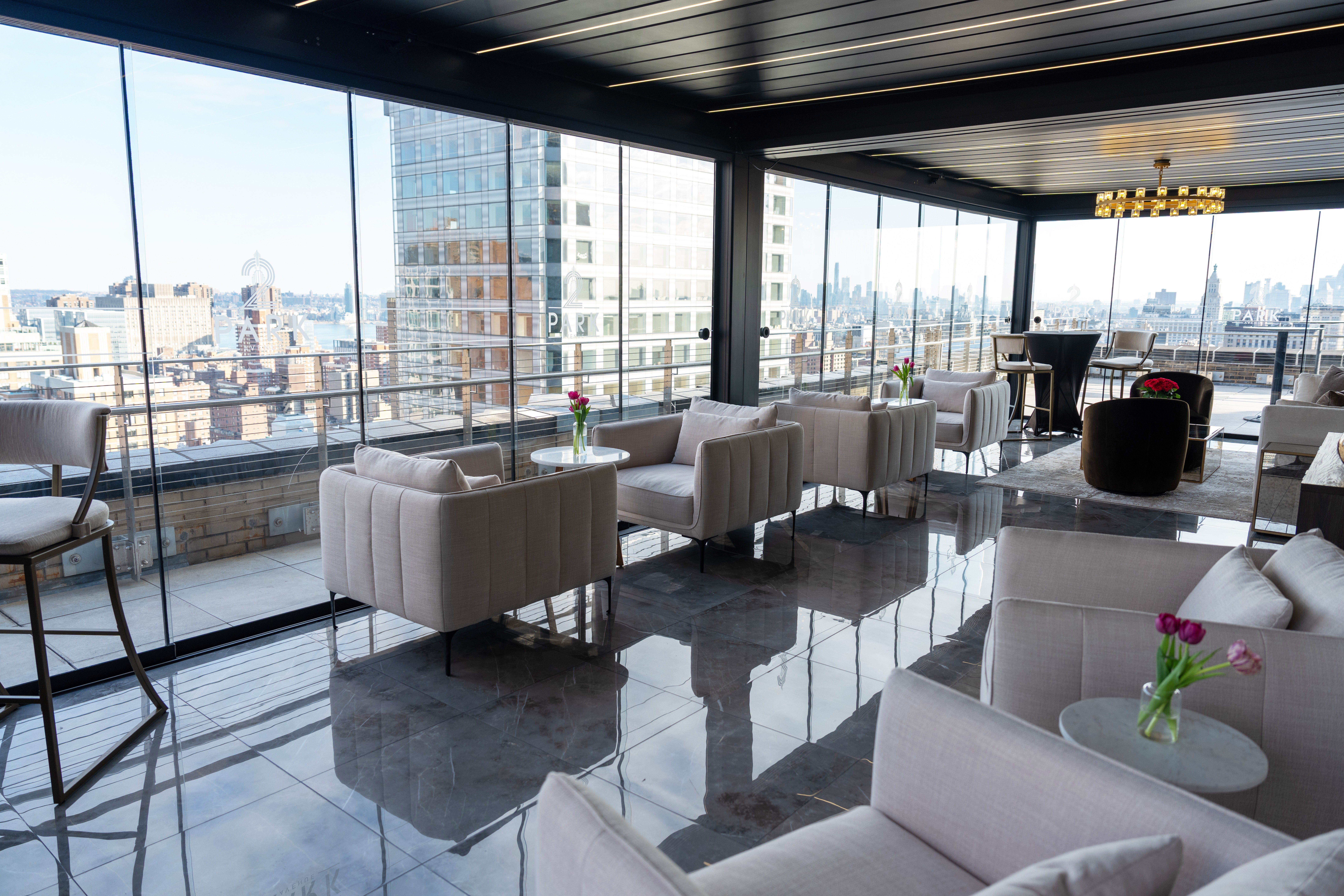 The terrace extends the experience outdoors. 2,370 sqft above Park Avenue, with open views across the Manhattan skyline and a natural setting for evening gatherings.