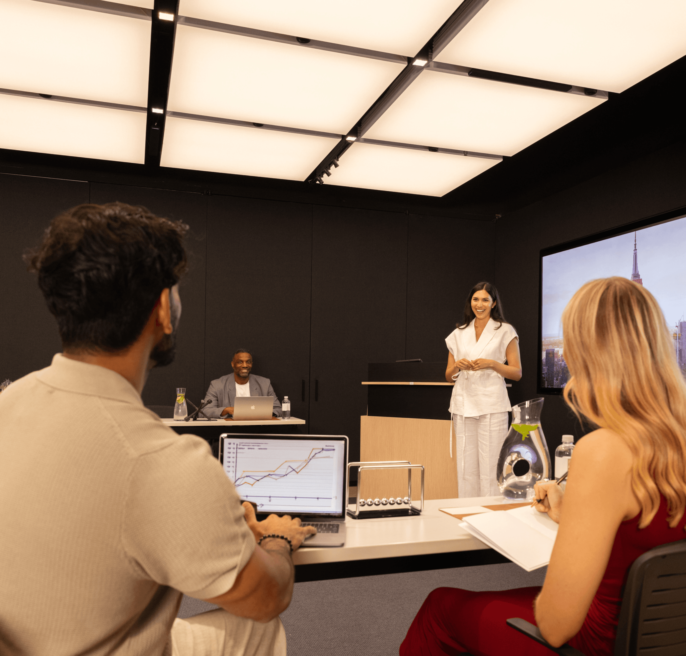 Host your next NYC meeting in private, design-forward rooms built for conversation, without distraction. Integrated AV with multi-screen displays, Zoom and MS Teams conferencing and a level of finish that allows discussion to settle in from the moment the people sit down.